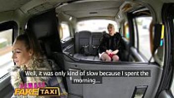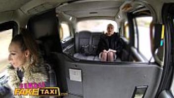 Female Fake Taxi Stud gives busty blonde milf a cream pie on the taxi bonnet.