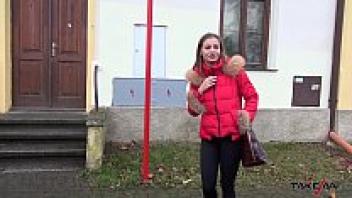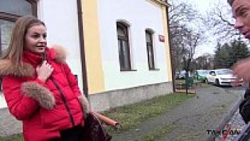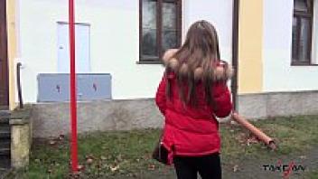 While she is on her way to public school, a young and adorable blonde adolescent girl is disrobing in a car.