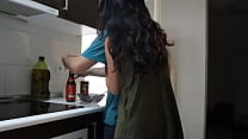 While studying overseas, a Chinese beauty fell in love with a large cock, and when her lover wasn't around, a foreign buddy showered her with affection in the kitchen.