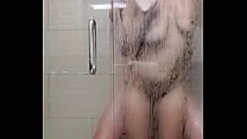 Mature wife gives me a blowjob, and I cum in her mouth. She smears sperm all over her large breasts. Homemade oral sex for an overweight couple. Amateur fetish.