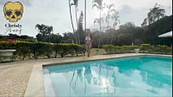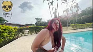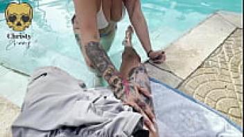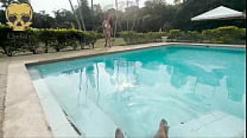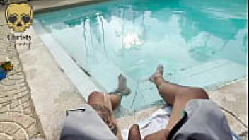 In the pool, I suck my friend's cock.