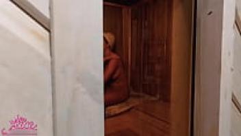 Licking the Pussy of a Lover in the Sauna after having a long day at work