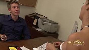 A gorgeous secretary gives her boss a footjob and a sexy bj.