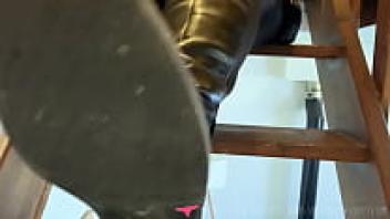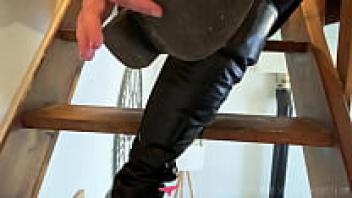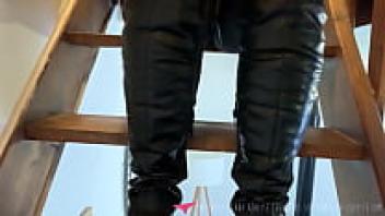 French dominatrix fetishism: boots, leather, hair, and foot