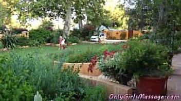 A lesbian who enjoys massages displays her underwear.