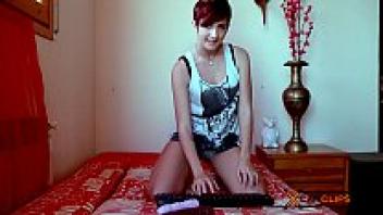 Sexy striptease teasing of a tiny, petite babe