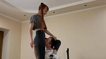 Pigtailed Stepsister Kira and Her Subby Brother's Pussy Worship in Yoga Trousers