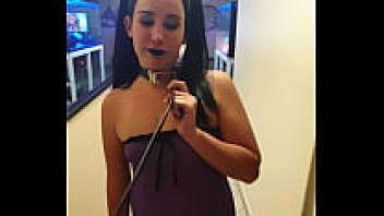 The emo bondage babe is pulled to the bathroom to urinate and suck cock.
