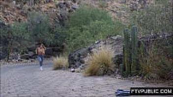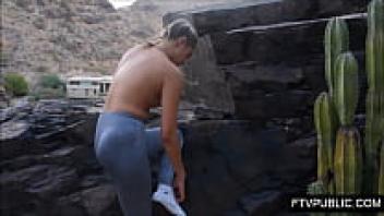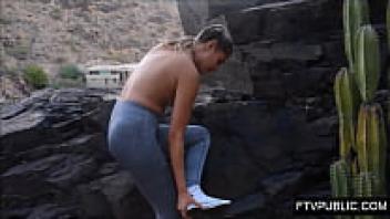 Miss Creamy flashing in public while nude on the beach, squirting, and taking a big cock cumshot in front of everyone