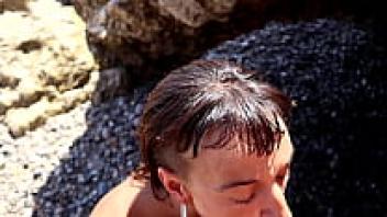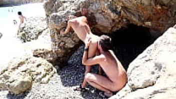 Nude Threesome and Facial on a Public Beach