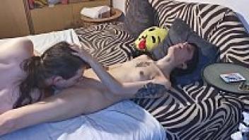 Lesbian facesitting orgasm performed by Lesbea Cindy Shine and the adorable Asian Alina Crystall couple