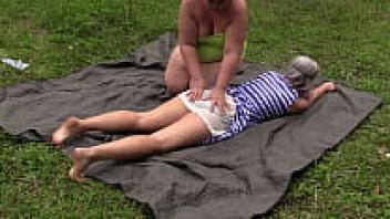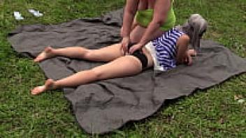 Lesbians who are mature and have large, attractive asses enjoy being outside while performing deep vaginal fisting while wearing medical gloves. They also engage in amateur fetish and fat cunt.