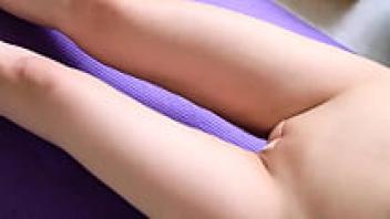 Yoga in the nude. Regina Noir. In the gym, a woman wearing white underwear does yoga. Complete Cam 1