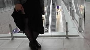 Mature BBW is spied on by a voyeur at a public mall. A large ass beneath a tight skirt and fat legs in nylon Fetish for amateur feet