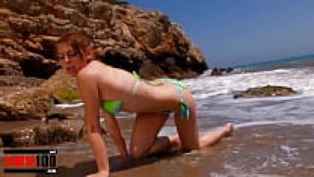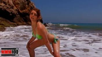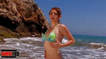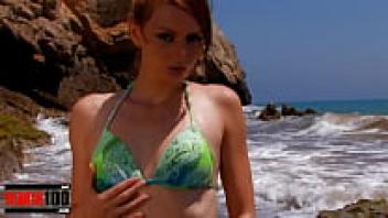 Leane Fontaine, a gorgeous redhead girl, is stripteased by the sea.