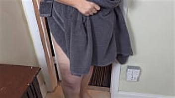 Before work, a hijab-wearing woman in a tight, seductive minidress without underwear is seen masturbating and revealing her juicy, wet pussy - jerk off and cum for me - ssbbw encouragement. Fat BBW Mature Chubby White milf showing large nude booty ass and boobs close up.