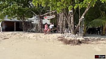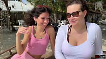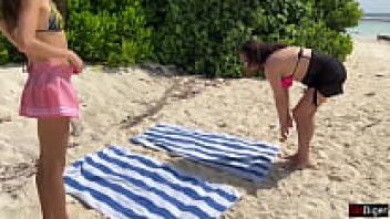 Stepmother and Stepdaughter Picked Up in Public on the Beach: Dangerous Dick Flashing Cum on Face