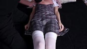 Asian teen girl wearing nylons and sporting tiny tits receives a facial