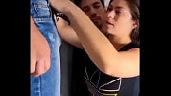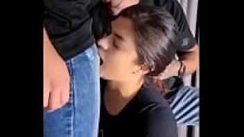 Ellie, a 19-year-old girl, fed cum after she had double penetrated.
