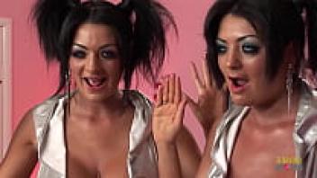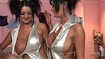 In an anal threesome, bisexual brunette milfs with fake tits are happily exploited as sex toys.