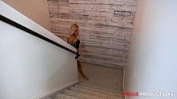 A lucky guy got a handjob from this gorgeous blonde with fake tits.