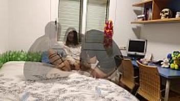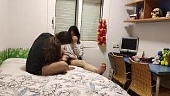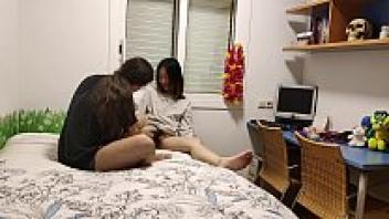 To the point where he cums, a thick Asian teen with large natural breasts sucks.