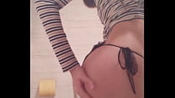 Helena, a petite, mild woman, is adored with her tan panties sideways and her pantyhose ripped open.