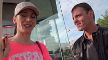 Fake Hostel Beautiful Brunette goes on two large European cocks.