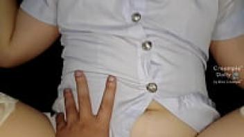 adored and creampied by a tight pussy, large breasts, white socks, and a Thai 18 Thai uniform
