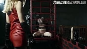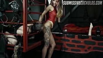 In front of her cuckold husband, the femdom diva adores BBC before strapping him down.
