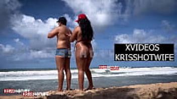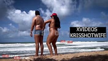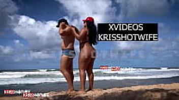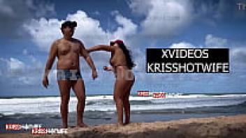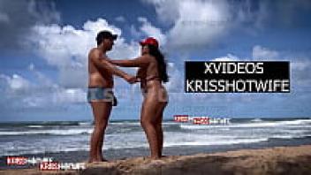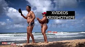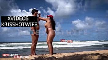 Because Kriss's hot wife wears a tiny bikini that leaves all the pussy out, men get hard on the beach.