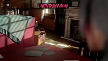 When the cleaning lady shows up, she gets creampied.