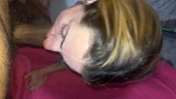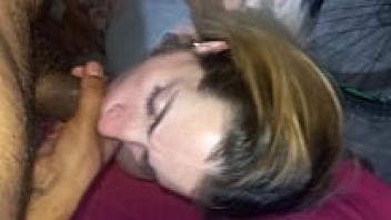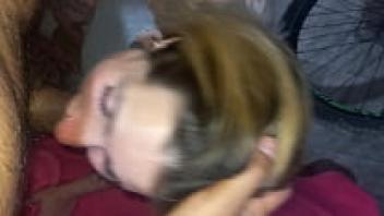 An amateur GF blowjob with a large facial cumshot on a redhead
