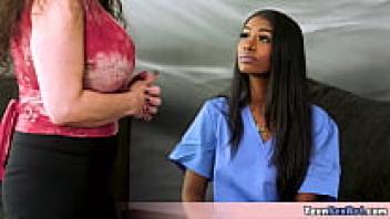A stunning ebony nurse obtaining a sperm sample in a unique and entertaining manner