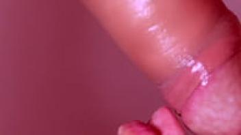 A close-up of a babe blowjob, a big dick, and a cum in the mouth