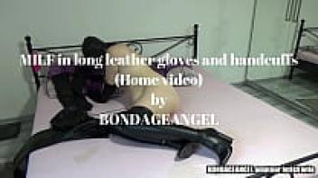 MILF wearing shackles and lengthy leather gloves (Home video)