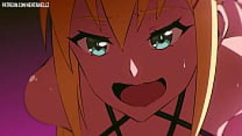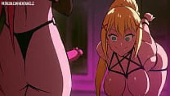 Creampie is placed inside the anal straps of a Hentai Lesbian dominatrix.