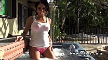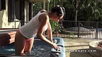 Ebony received an outdoor anal love pov after using the hot tub.