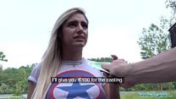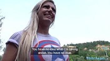 Amber Deen, a British blonde public agent, had her first outdoor sex.