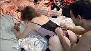 French amateur, doggy style, satin lingerie, clothed sex, blowjob, rimjob, corset, ripped spandex, and panty love (1253 (01))