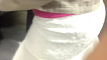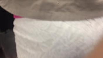 Beautiful butt upskirt sans panties for outdoor wear. Voyeur is spying on a MILF in a public park. Amateur fetish. PAWG goes behind the scenes.