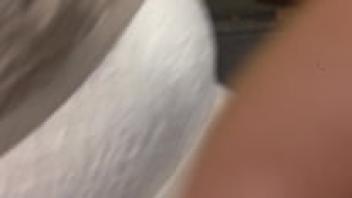 Quick, amateur sex with a stranger in a public restroom. Upskirt underwear