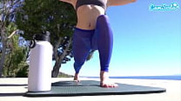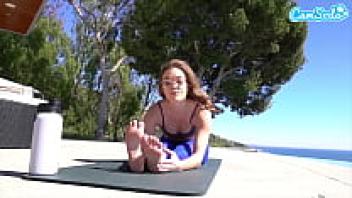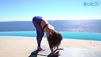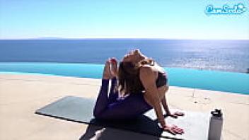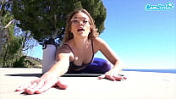 AdaptableWhile doing yoga, Katie Kush masturbates with two dildos in her pussy.