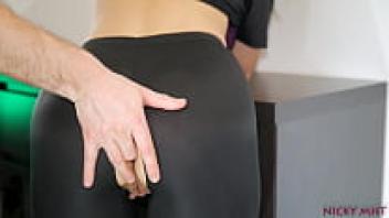 Anal intercourse with a gorgeous brunette wearing nylon stockings