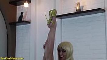 Waiting for your dick is a busty flexi contortionist.