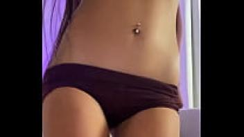 Teenage brunette striptease following a hair wash