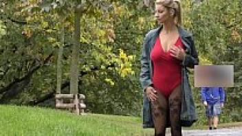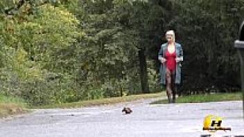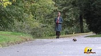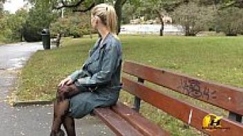 Katerina Hartlova publicly masturbates in pantyhose in City Park