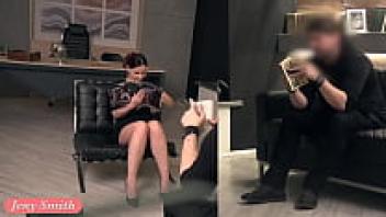 Quiet. Jeny Smith taunting a man without underwear. Office prank with hidden cameras