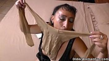 Sweet Milf With Nylon Pantyhose, Footjob Cum On Legs