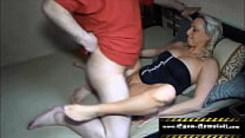 While her husband looks on, the BBC adores the curvy Milf wearing nylon stockings.